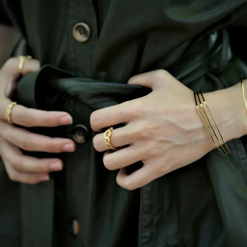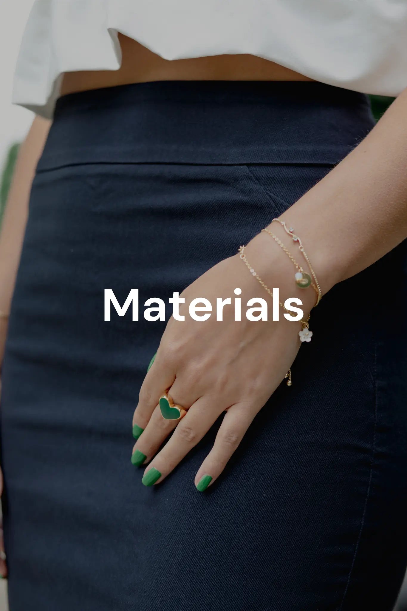 Our pieces are meticulously crafted from 18K gold-plated brass, boasting a substantial layer of 18K gold measuring 2 microns in thickness. For enhanced durability, each piece is coated with an anti- tarnish layer.